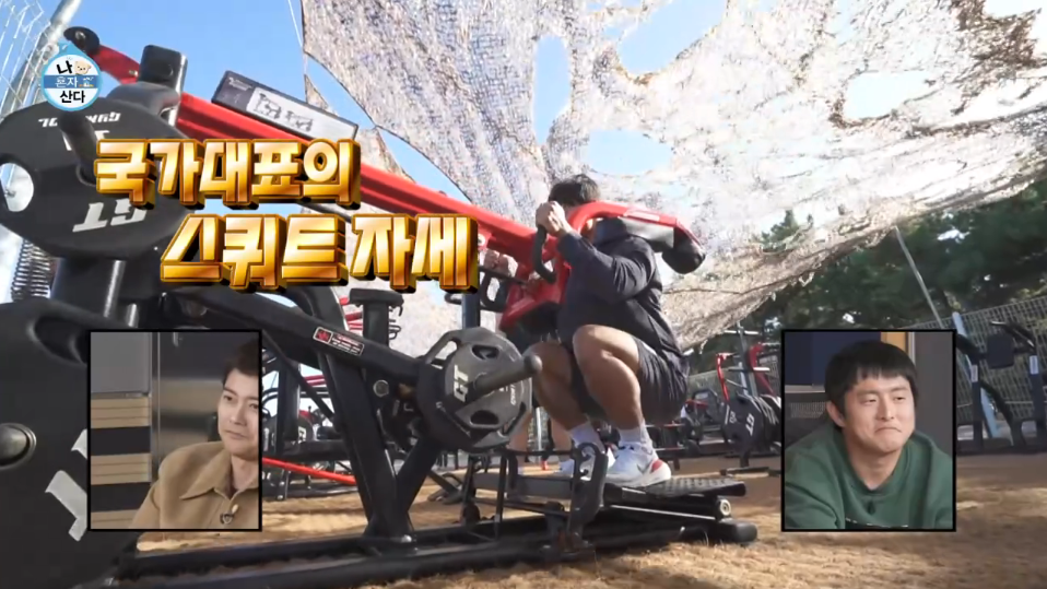 브이 스쿼트는 둔군, 대퇴사두근, 햄스트링 등 하체 전반의 근육을 강화시키는데에 좋은데요. 윤성빈 또한 코쿤에게 엉덩이 근육의 중요성을 이야기 하며, 엉덩이가 갈라지는 끝까지 갈라지는 듯한 자극과 햄스트링 자극을 이야기하며 윤성빈의 딱딱한 엉덩이의 비결로 브이스쿼트르 코쿤에게 전수하였습니다.