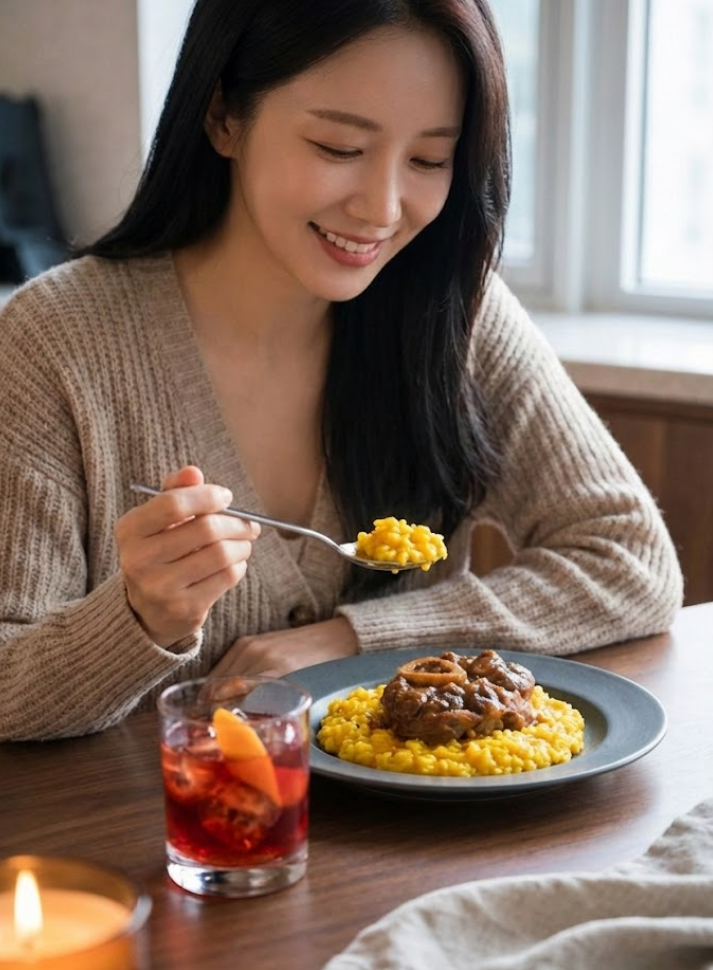 2. 취향의 성지: "황금빛 오소부코와 완벽한 네그로니의 변주"