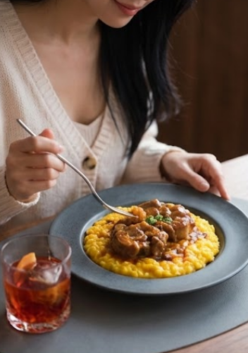 밀라노를 하나의 색으로 정의한다면 단연 '황금색'입니다. 식탁 위에 펼쳐진 이탈리아 북부의 미식은 단순한 식사를 넘어 승리의 기쁨을 미리 맛보는 의식이 됩니다.