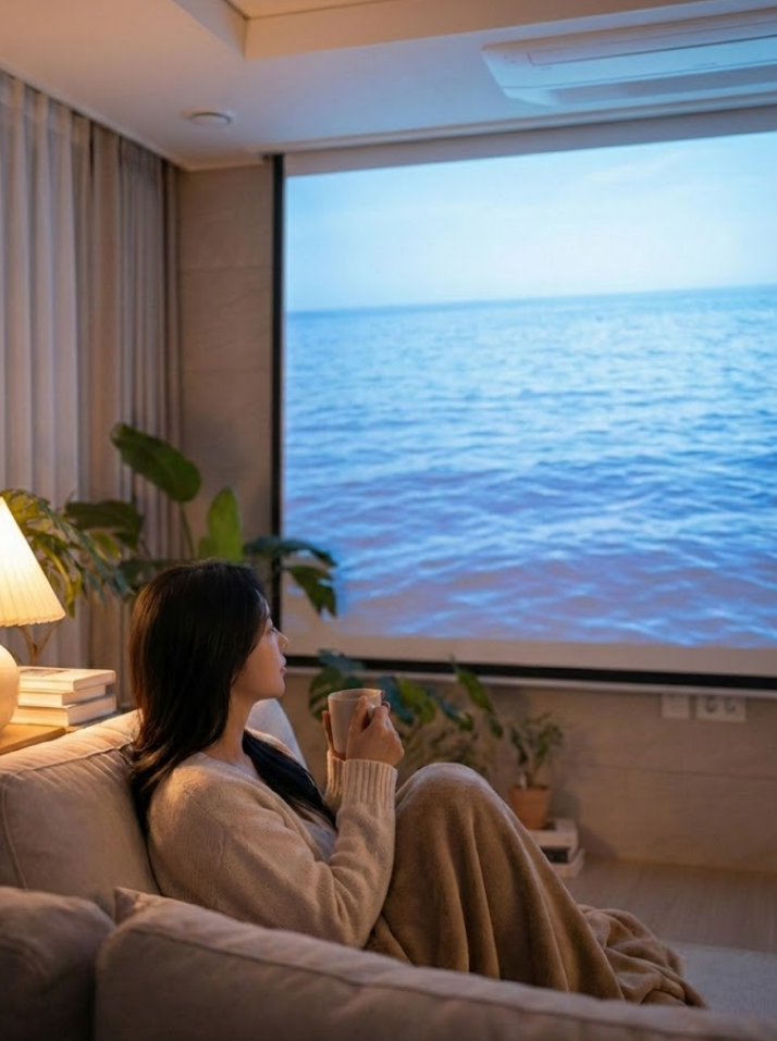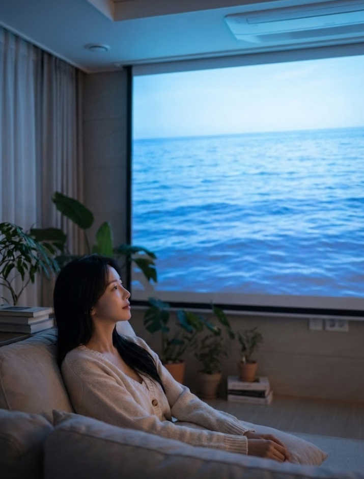 - 💡 물결 무늬 조명: 단돈 몇만 원의 '워터 리플 프로젝터'면 천장이 일렁이는 바다로 변신합니다.
