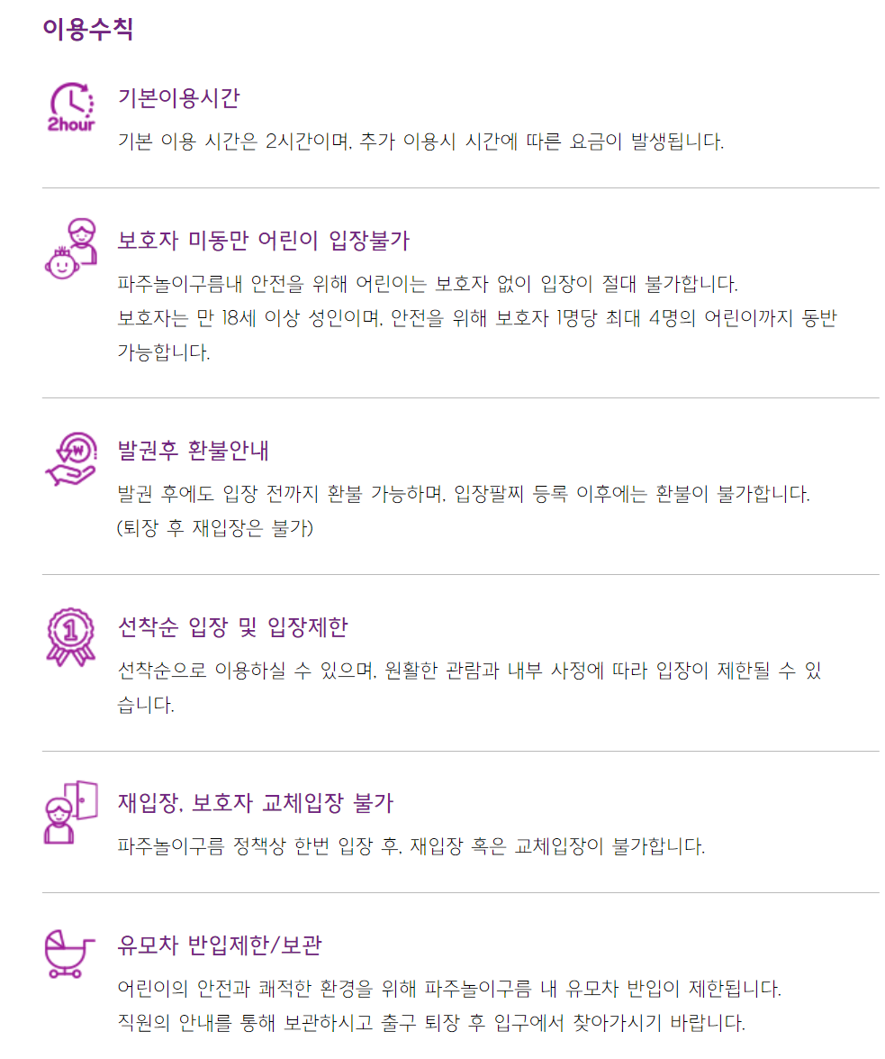 파주 놀이구름은 사전 예약이 필요하지 않지만, 주말이나 공휴일에는 많은 인파가 몰리기 때문에 미리 예매를 해두는 것이 좋습니다.