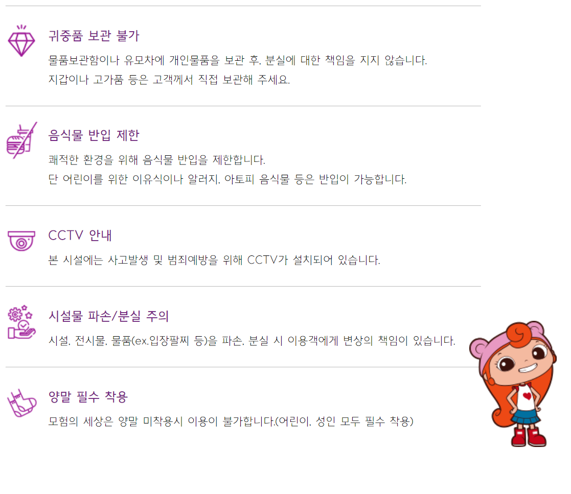 놀이구름을 방문할 때는 몇 가지 유의사항이 있습니다. 첫째, 아이들이 안전하게 놀 수 있도록 항상 눈을 떼지 말고 지켜봐 주세요. 둘째, 개인 위생을 위해 손 세정제를 자주 사용하고, 놀이기구 사용 후에는 꼭 손을 씻도록 합니다. 마지막으로, 놀이기구 사용 시 나이와 체중에 맞는 시설을 이용하도록 하여 안전사고를 예방하세요.