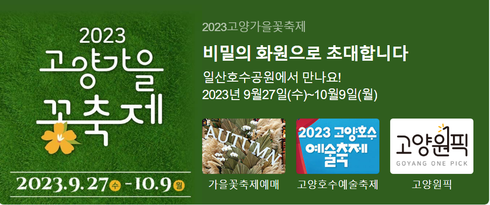 고양호수 예술 축제는 호수공원으로 유명한 일산 호수 공원 과 일산 문화 광장 일대에서 벌어지는 고양시민들에게 힐링이 되는 공간으로 고양가을 꽃축제의 프로그램 중 하나입니다. 고양 가을 꽃축제는 9월 27일부터 계속 진행중이며, 고양 호수 예술 축제는 10월 6일 금요일부터 10월 9일 월요일까지 진행됩니다. 고양 호수 예술축제는 서울거리예술축제의 자유분방함 보다는 조금 더 정돈 된 행사로 가족단위로 관람하기 정말 좋은 이벤트입니다. 일산 호수 공원의 가을날씨는 가을의 향취를 정말 제대로 향유할 수 있는 만큼 가족들과 일산 호수 공원에서 보는 고양호수 예술축제는 고양시민 뿐만 아니라 일산을 찾는 많은 분들에게 기억에 오래오래 남을 이벤트가 될 것입니다.